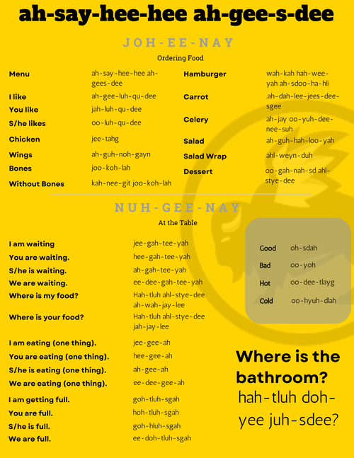 “MENU” & “RESOURCES” “ᎠᏎᎯᎯ ᎠᎩᏍᏗ” & “ᎤᎪᏗ”
